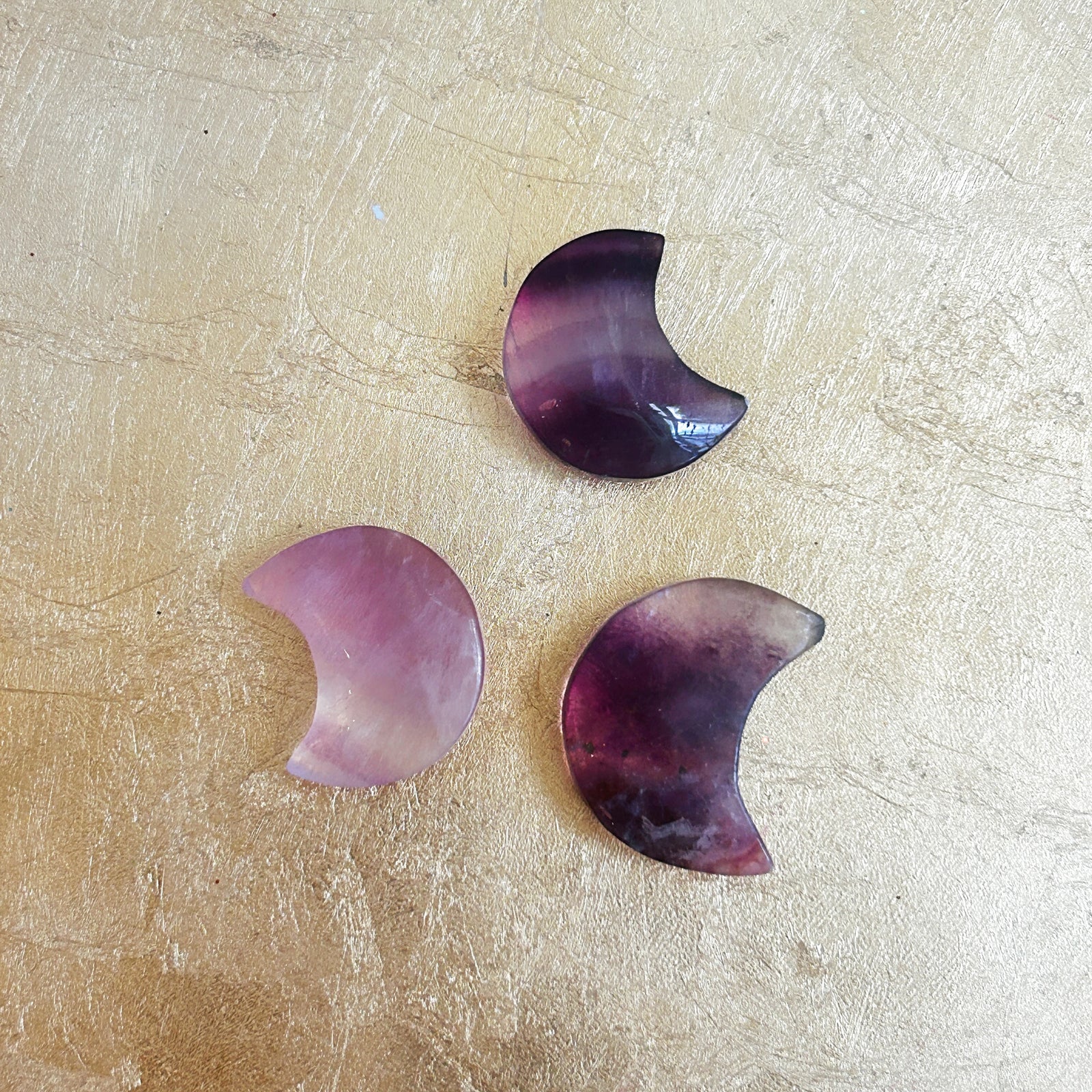 The Golden Carrot Fluorite Crescent Moon $15.00