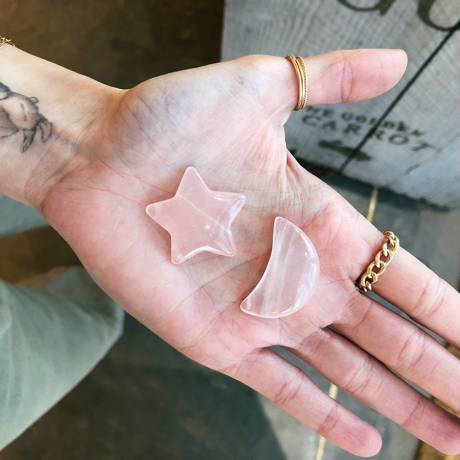 the golden carrot Rose Quartz Jelly Moon $6.00