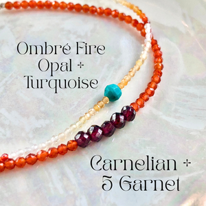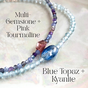 - Hand strung in Los Angeles, California using natural precious and semi-precious cut stones
