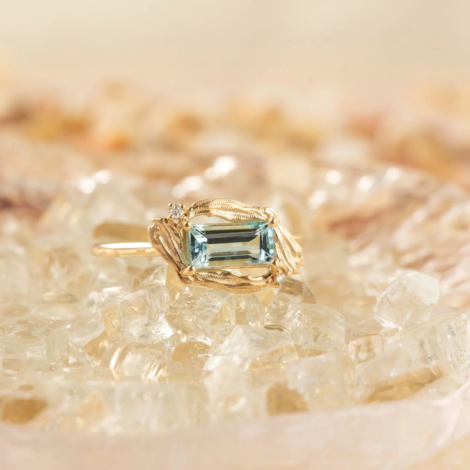 le conte jewelry Brushed Tide, Aquamarine & Diamond Ring $1,045.00