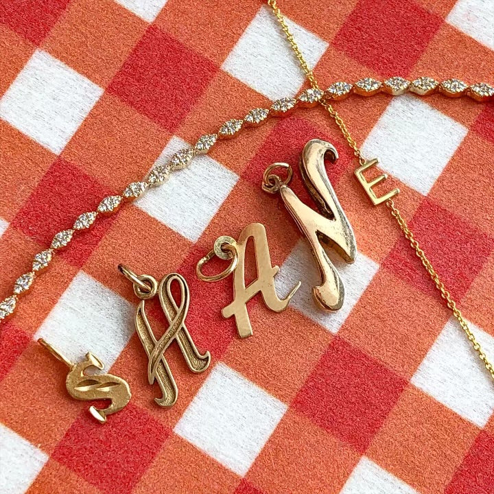 the golden carrot Vintage Letter Charms from $80.00