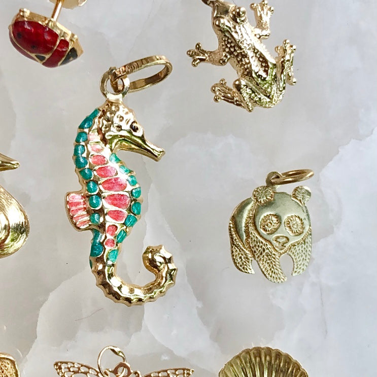 The Golden Carrot Bubbles, Vintage Enamel Seahorse Charm $292.00